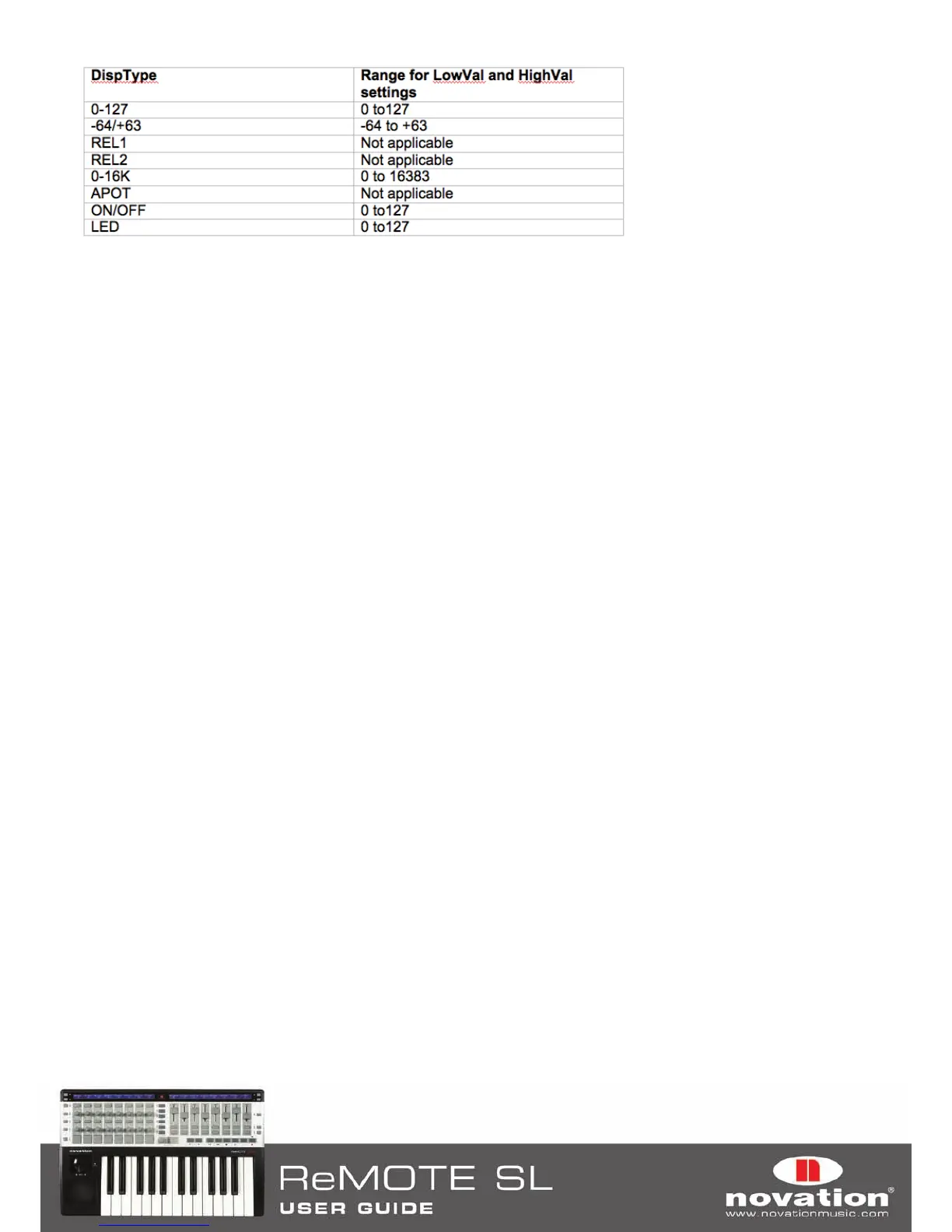 The range of values allowed for both of these settings will depend on the DispType setting as follows: