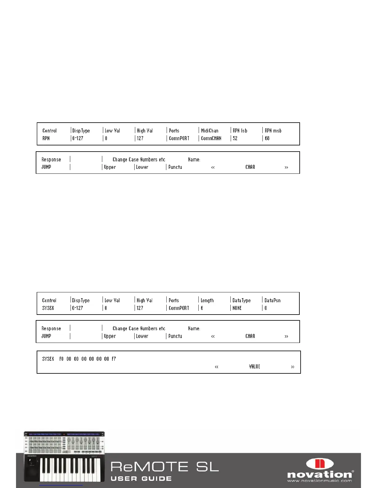 The DispType, LowVal, HighVal, Ports, MidiChan, Response, BtnType, TchMode and Name settings are the same as for