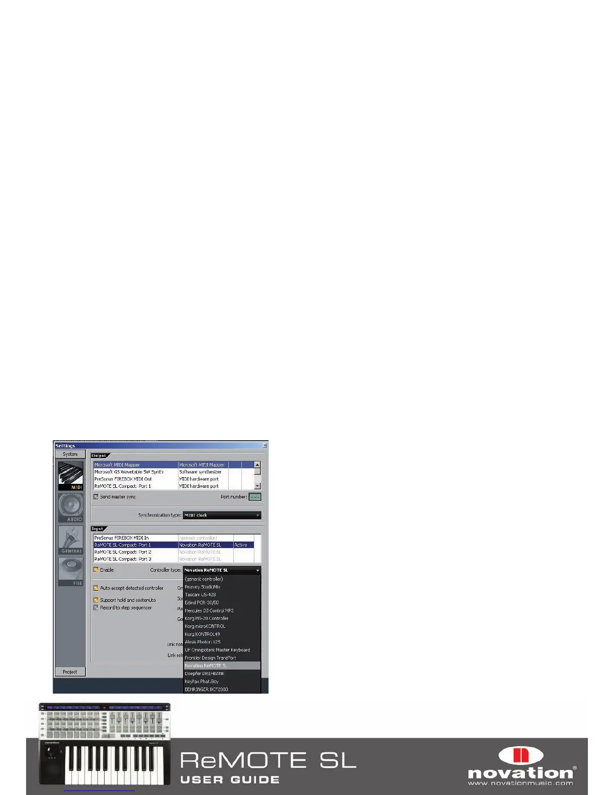 Also select ‘Novation ReMOTE SL’ from the ‘Controller Type’ drop-down menu, then close the MIDI Settings window.