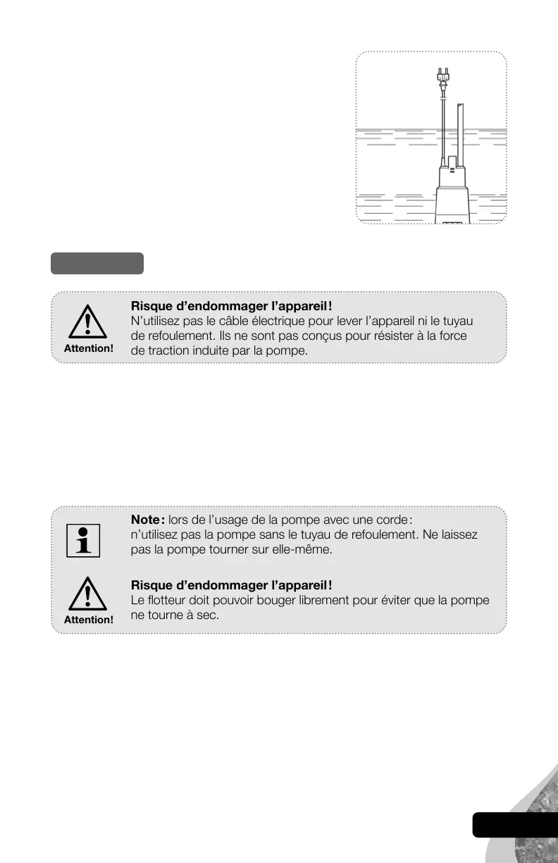 des poches d’air ne se forment pas sous l’appareil. Une fois immergée, la pompe