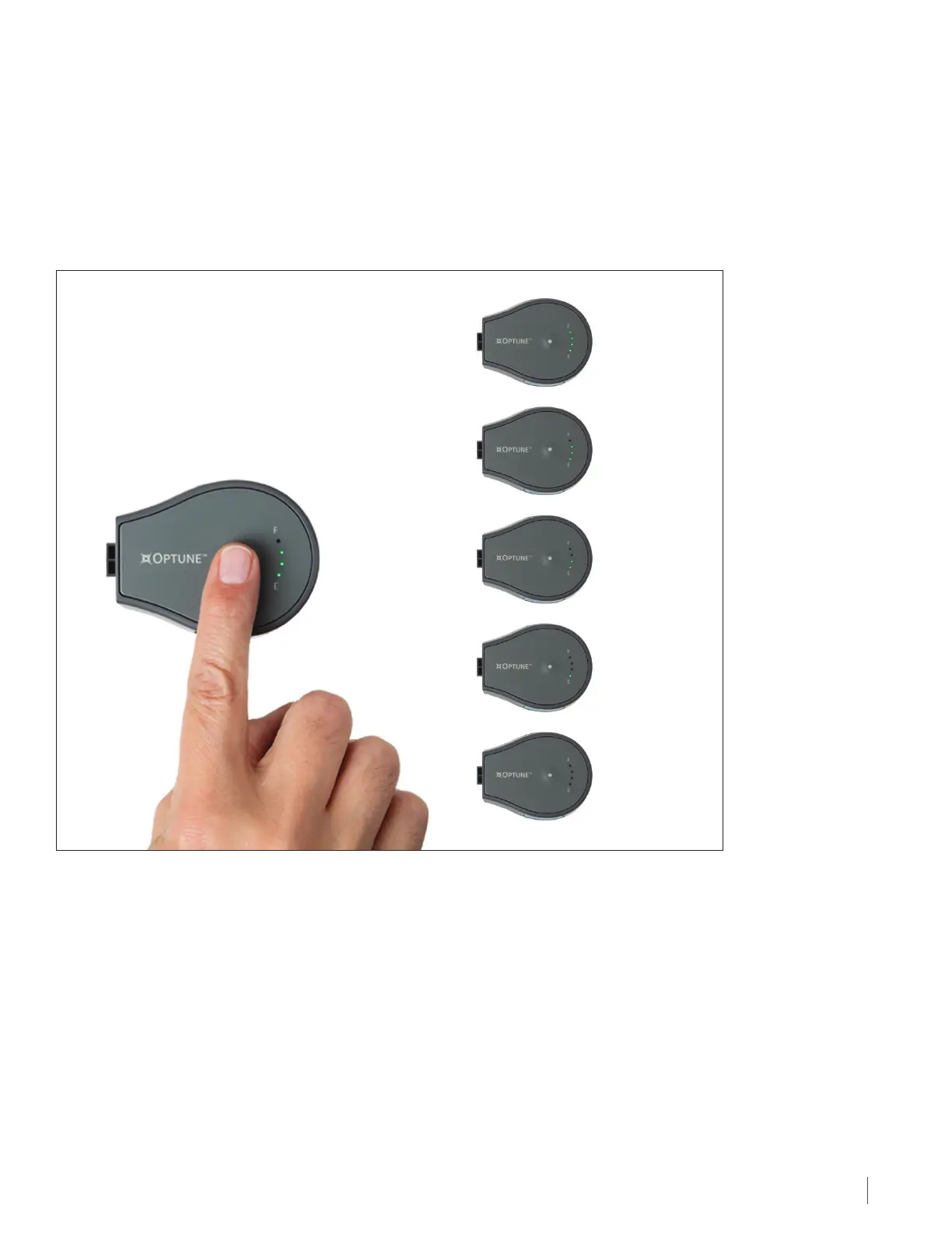 by the lighted gauge to the right of the button. The gauge reads from full to empty, like a gas gauge in a car.