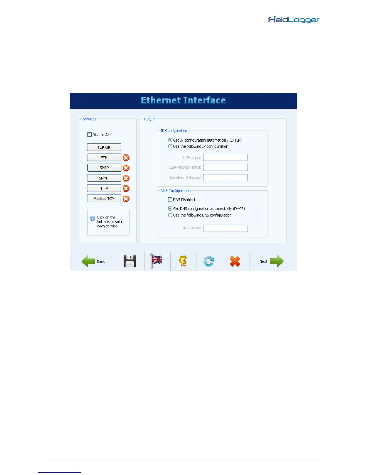 parameters relating to it, such as FieldLogger IP, the subnet mask and default gateway.