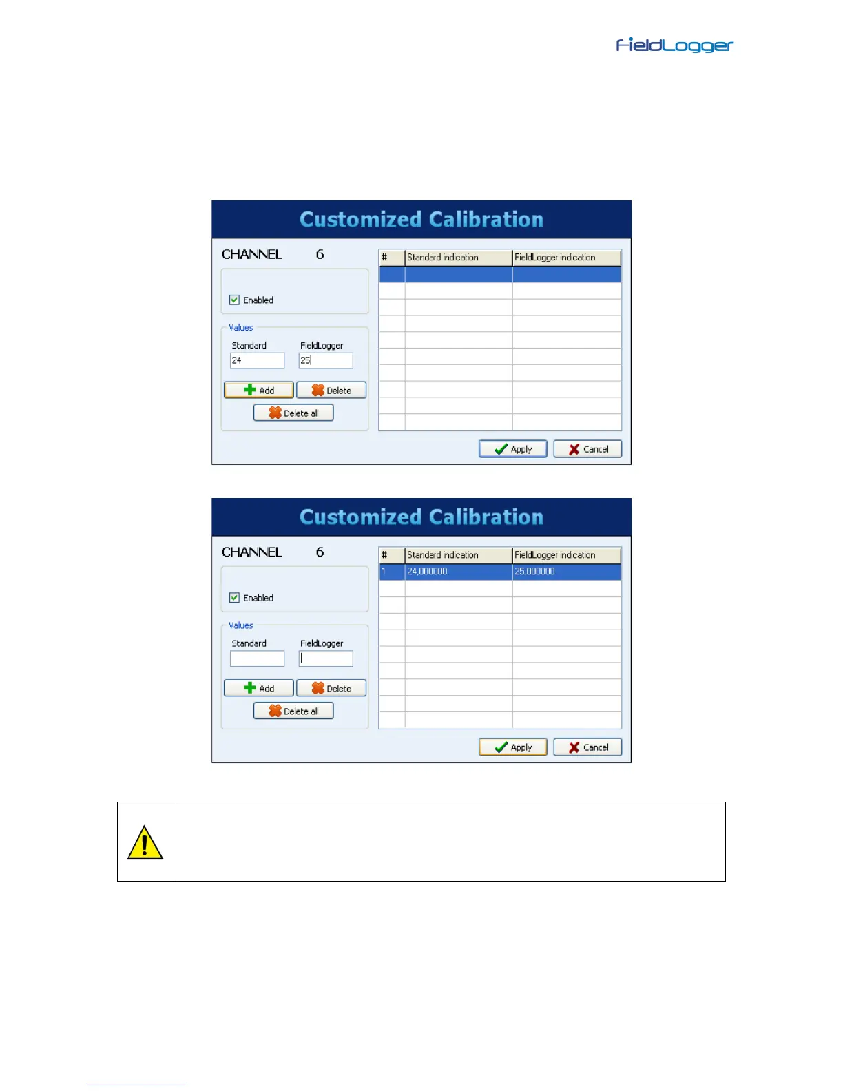For the same reason, customized calibration points should be configured in the FiledLogger