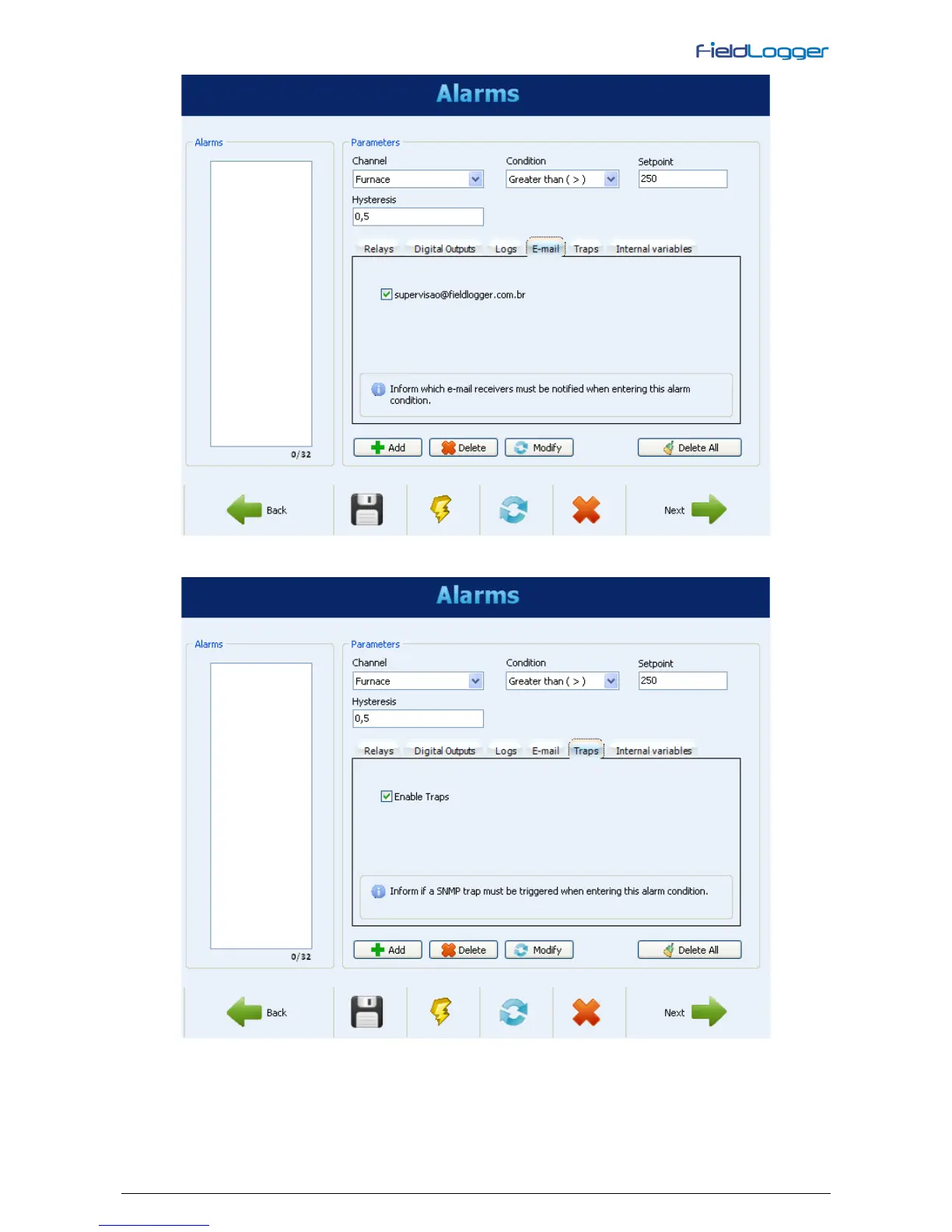 Alarms Configuration - Enabling SNMP traps