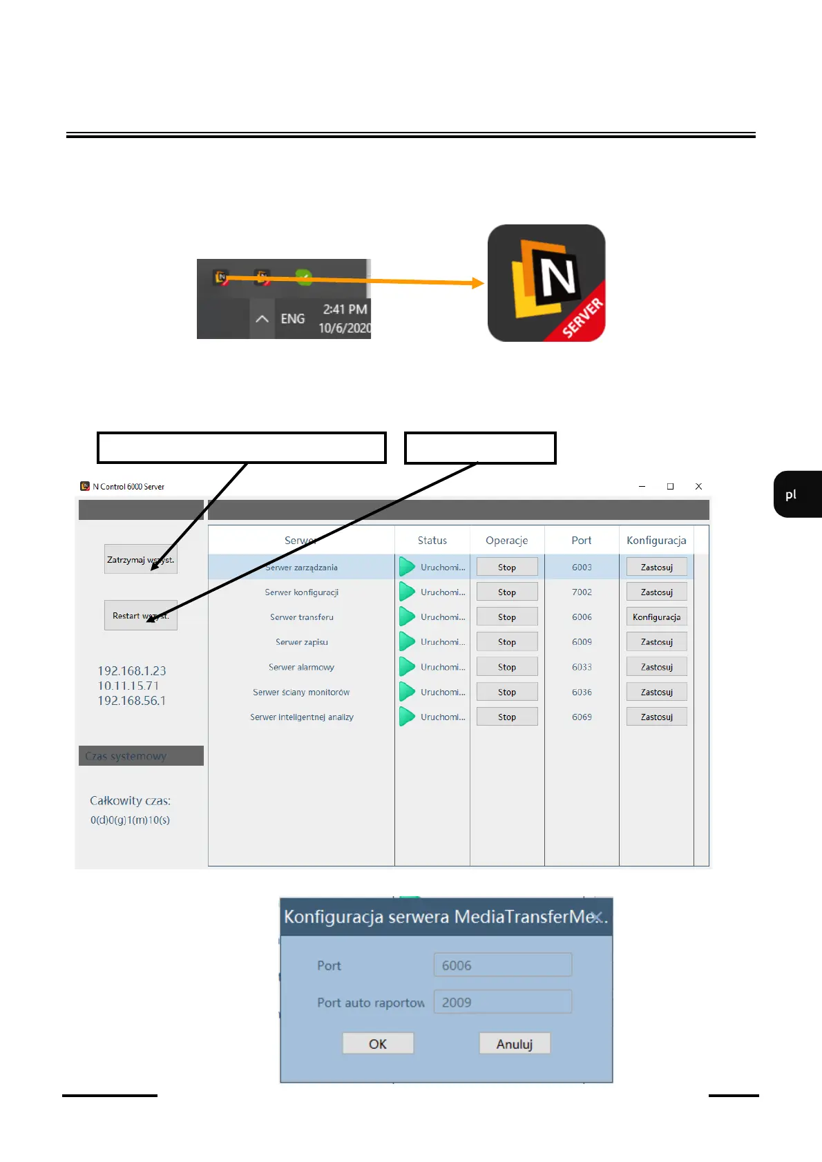 Po uruchomieniu oprogramowania N Control 6000, w tle zostają uruchomione procesy serwerowe.