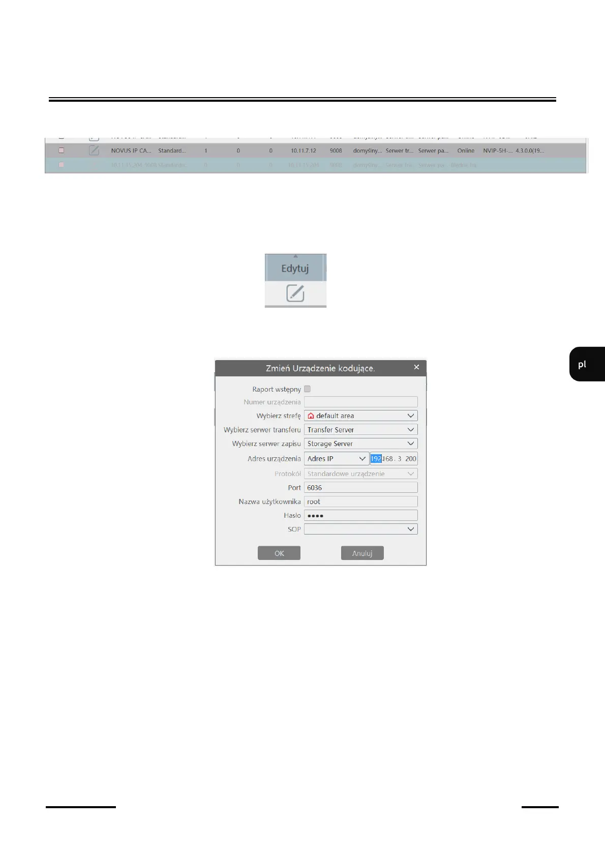 3.2. Edycja urządzeń (rejestratorów, kamer) na liście dodanych urządzeń.