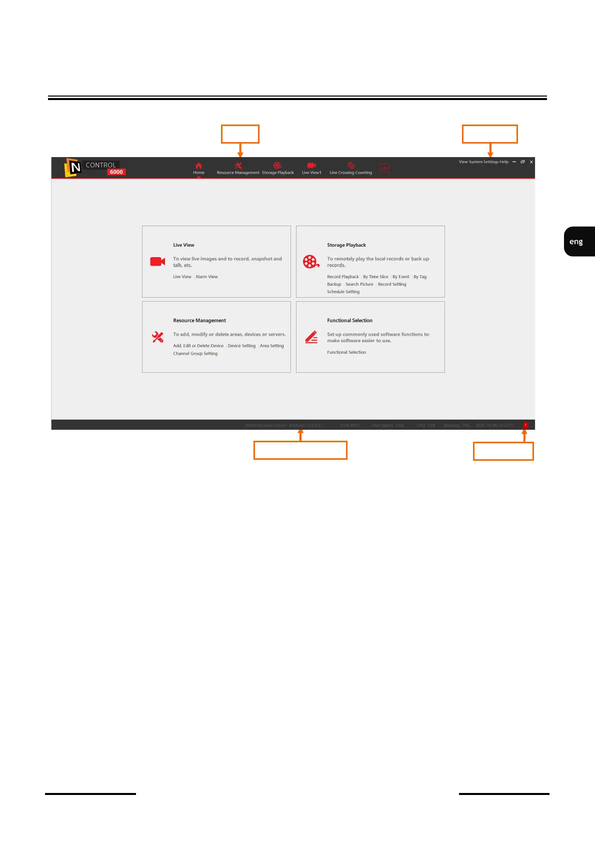Information bar - displays the authentication server IP address, communication port, name