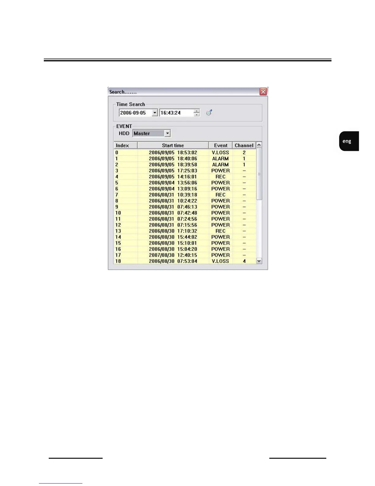 HDD should be selected. Event list from required HDD will be displayed in a while.