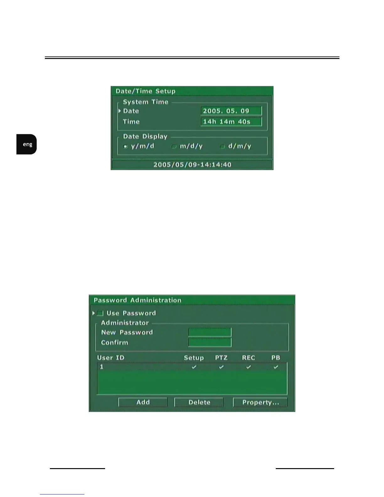Sub-menu used for adding new user accounts and for current passwords and access levels modification.
