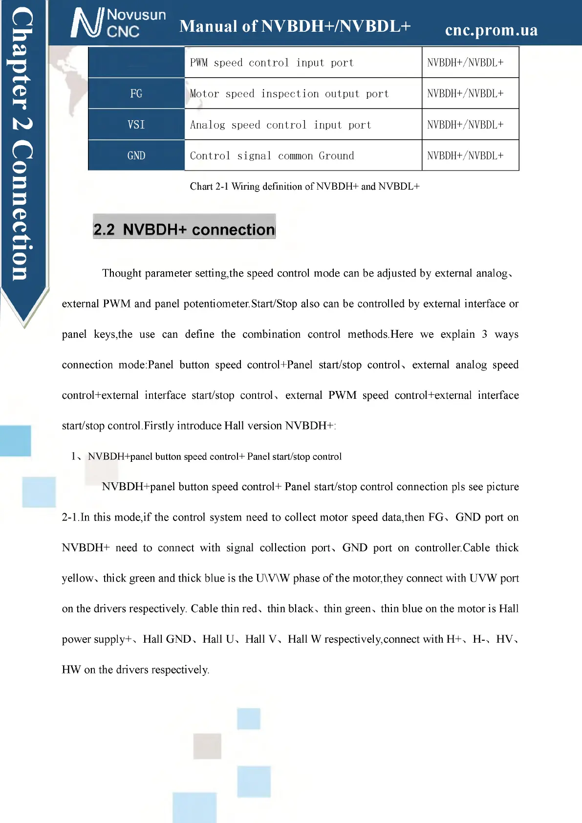 Chart 2-1 Wiring definition of NVBDH+ and NVBDL+