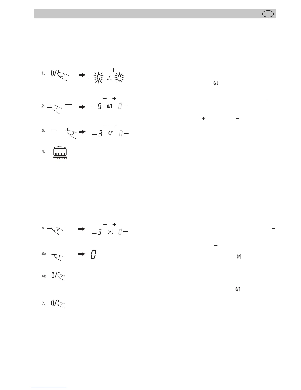 7. Press the ON/OFF key of the hob . The hob will be