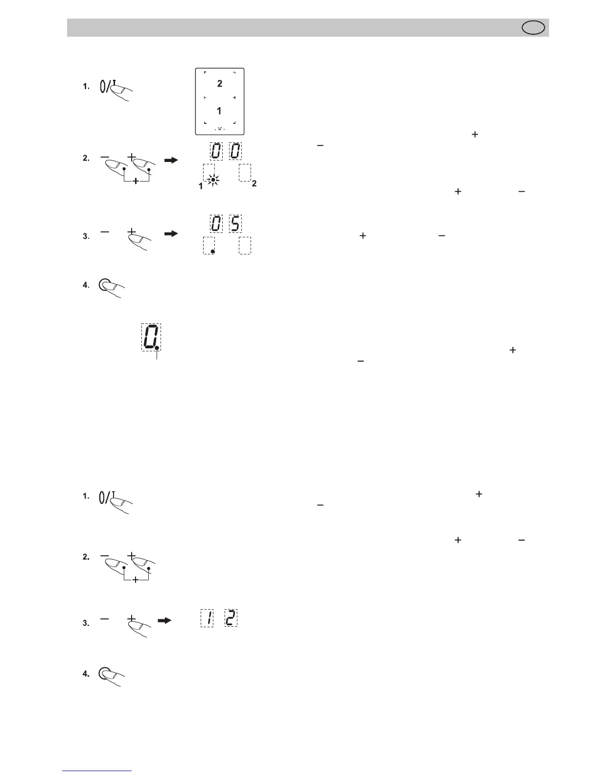 min-toets drukken, tot het controlelampje (decimale