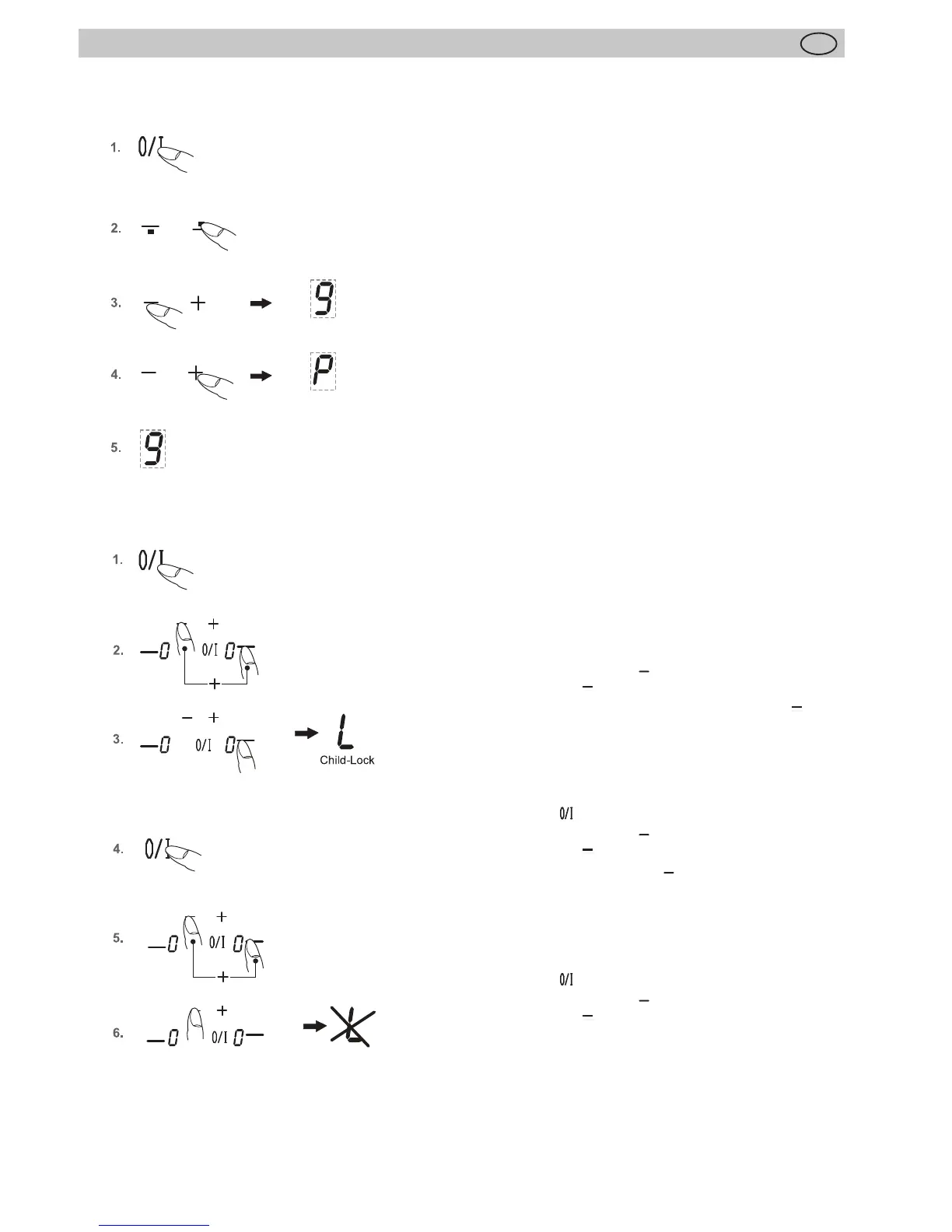 In den Kochstufen-Anzeigen erscheint ein L für Child-Lock;