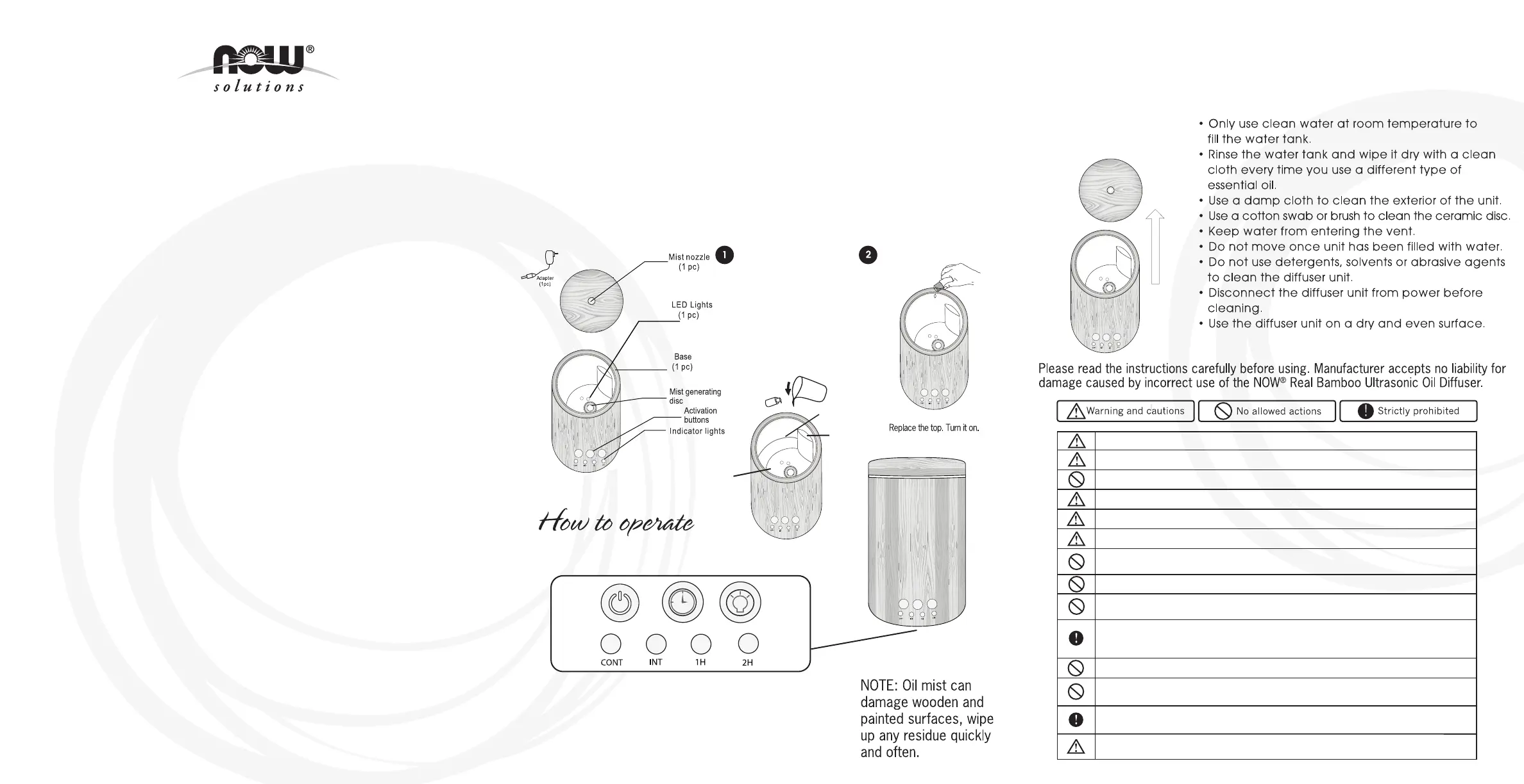 3. Do not use detergents, solvents or abrasive agents to clean the diffuser unit.