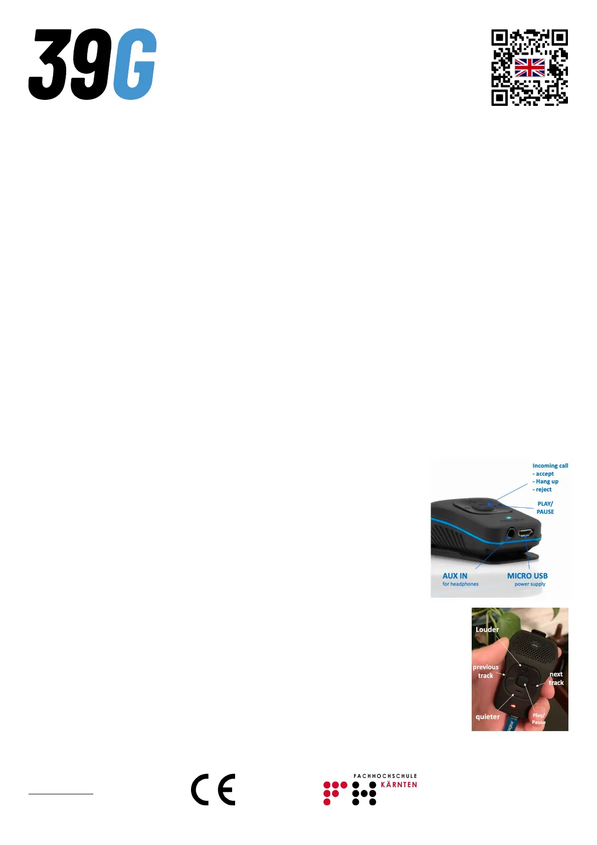• Press and hold the Play/Pause button for 3 seconds: Bluetooth® Connecting Modus