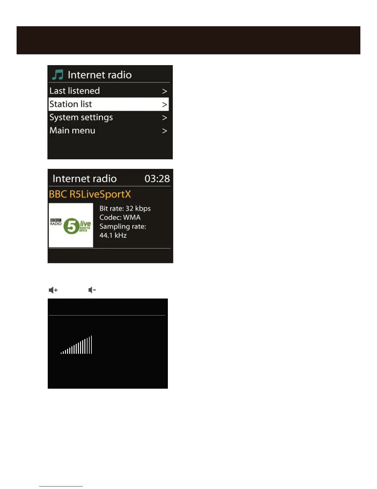 To adjust the volume during playback, use the button on vol+ and vol- on the radio