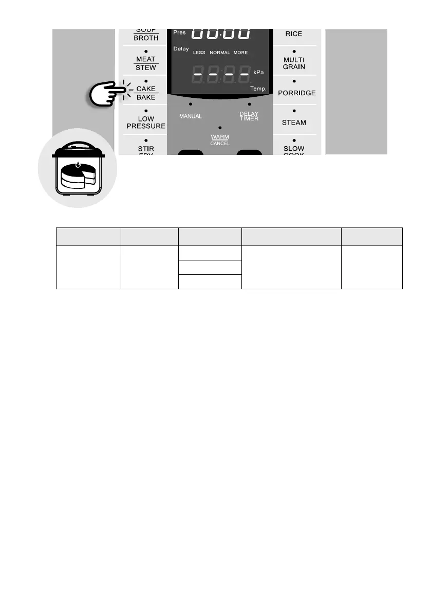 5. Tekan butang [CAKE/BAKE] berulang kali untuk memilih masa membakar yang dikehendaki