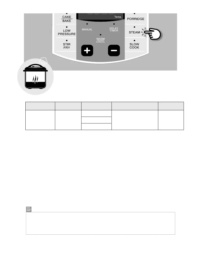 5. Tekan butang [STEAM] berulang kali untuk memilih masa mengukus yang dikehendaki atau