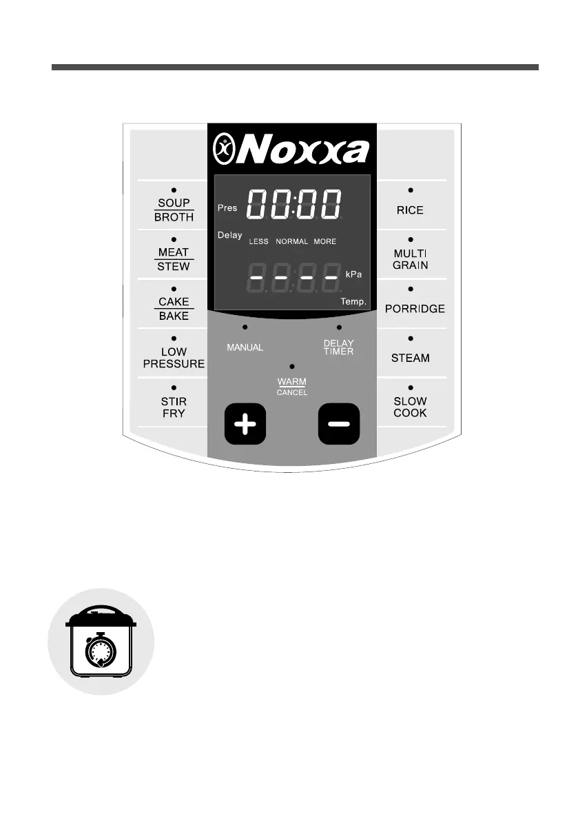 • Noxxa 气压锅能贮存最后一次使用的烹煮时间设置,同时也可