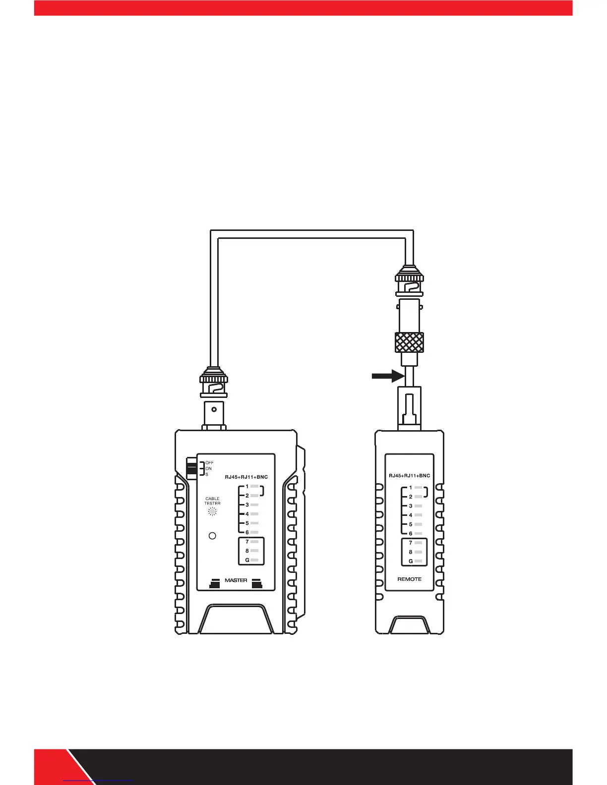 2. Connect R 45 port of BNC adapter with remote tester. then J