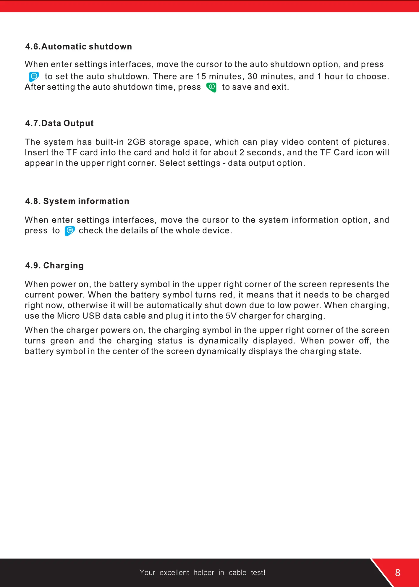current power. When the battery symbol turns red, it means that it needs to be charged