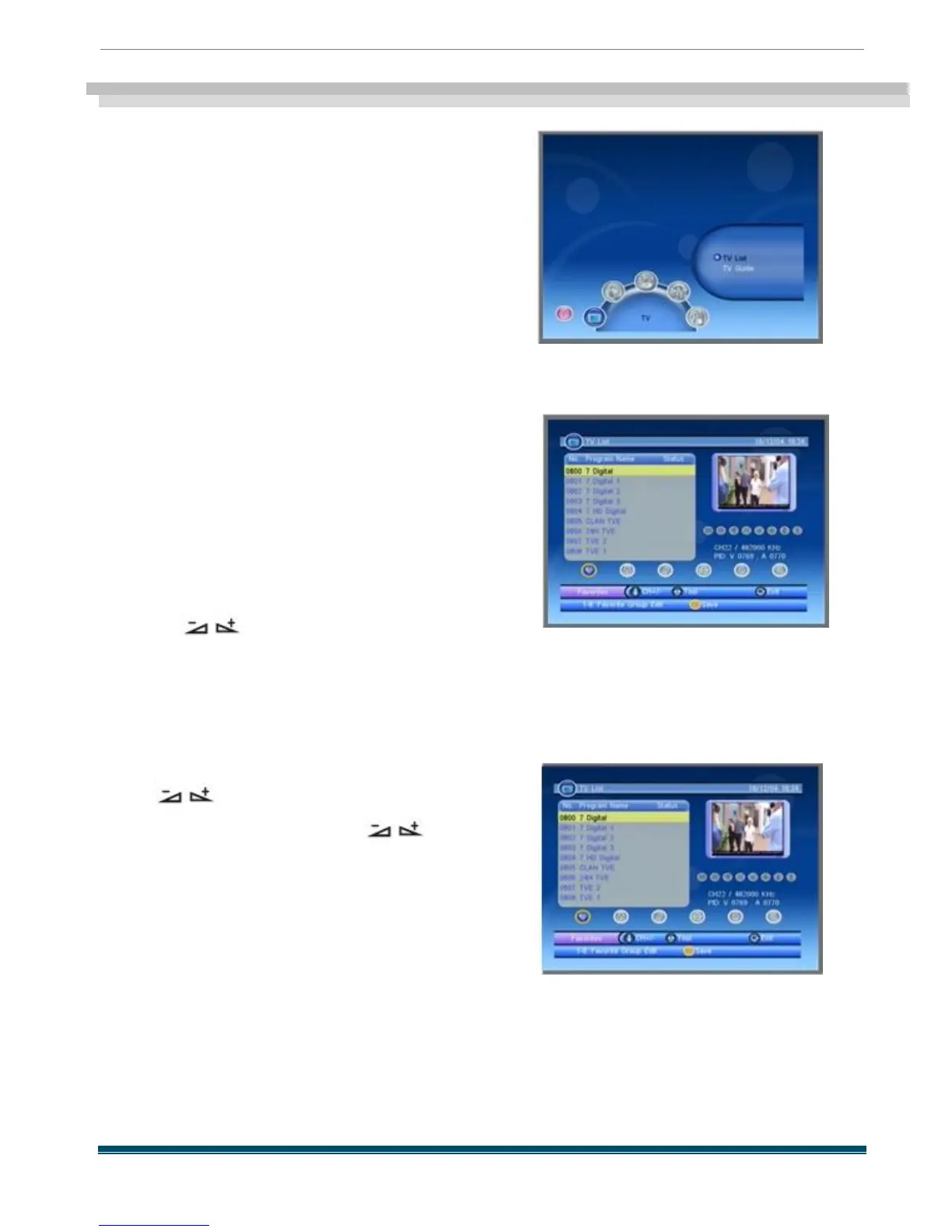When you enter “TV List ” menu , the screen will