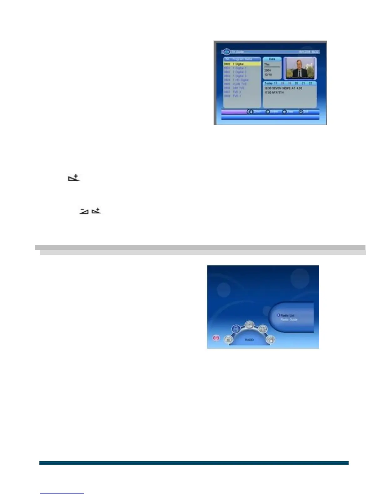 week's ( 7 days ) program guides of selected channel are displayed on the bottom