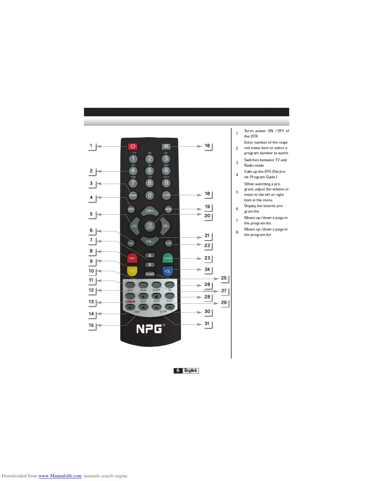 Calls up the EPG (Electro-
