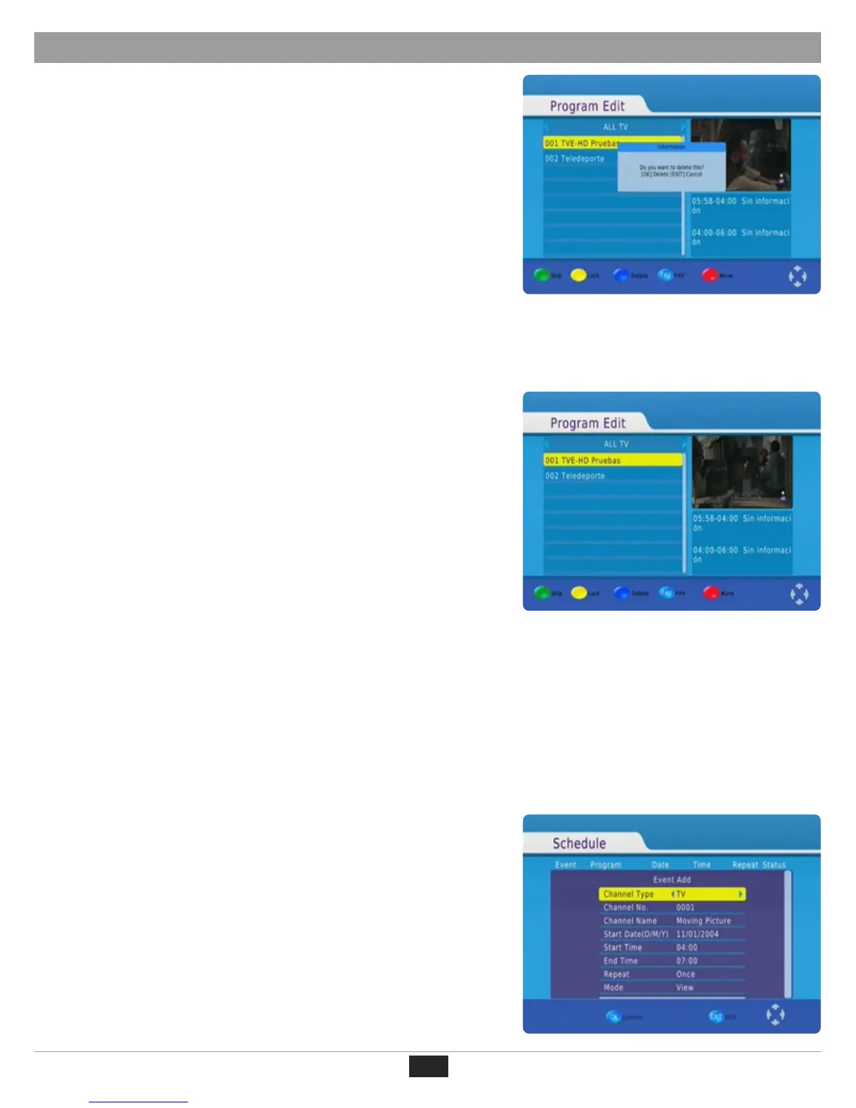 1. Select the Channel and then press the BLUE button. A warning
