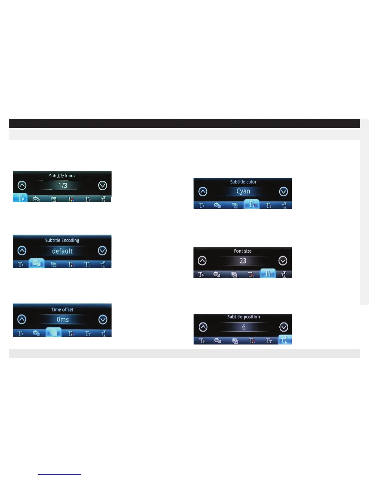 tamanho da letra (cima/baixo) ao apresentar a legenda. (O menu OSD não deve