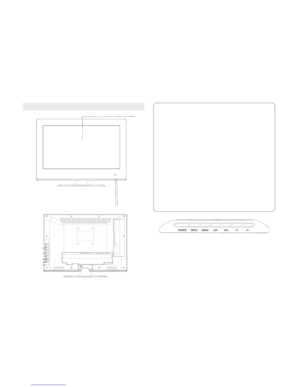 POWER: Power buon on the TV.