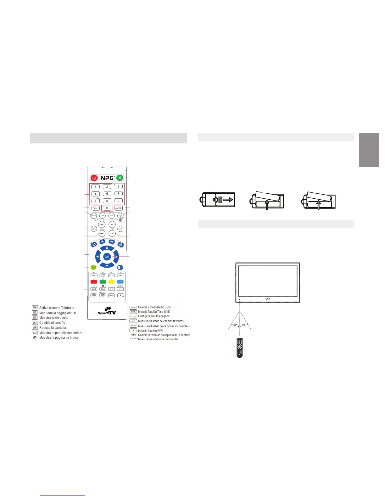 Rere la tapa de la parte trasera del mando a distancia e introduzca 2 pilas de