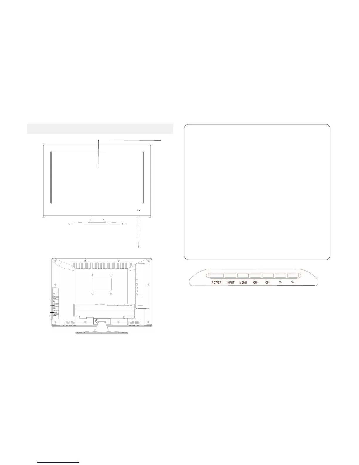 POWER: Bouton pour allumer ou éteindre le téléviseur.