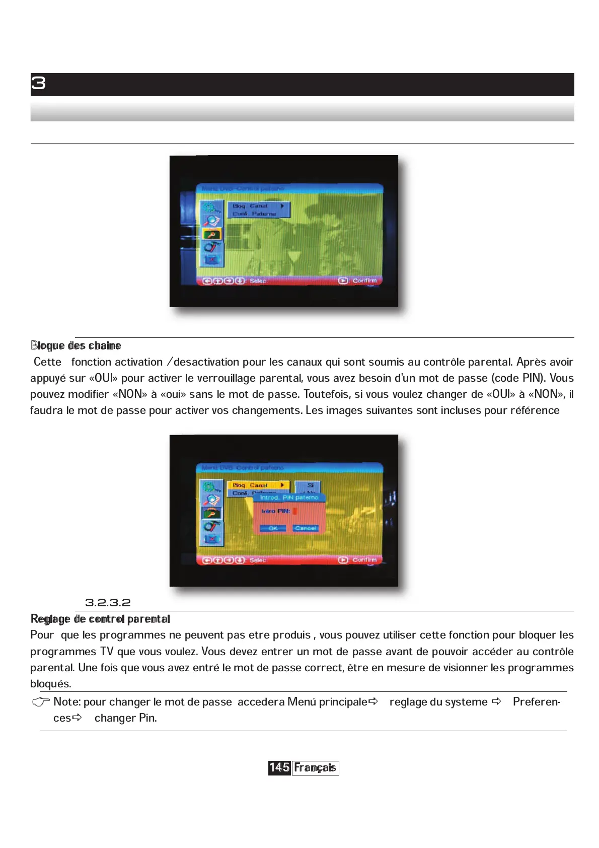 appuyé sur «OUI» pour activer le verrouillage parental, vous avez besoin d'un mot de passe (code PIN). Vous