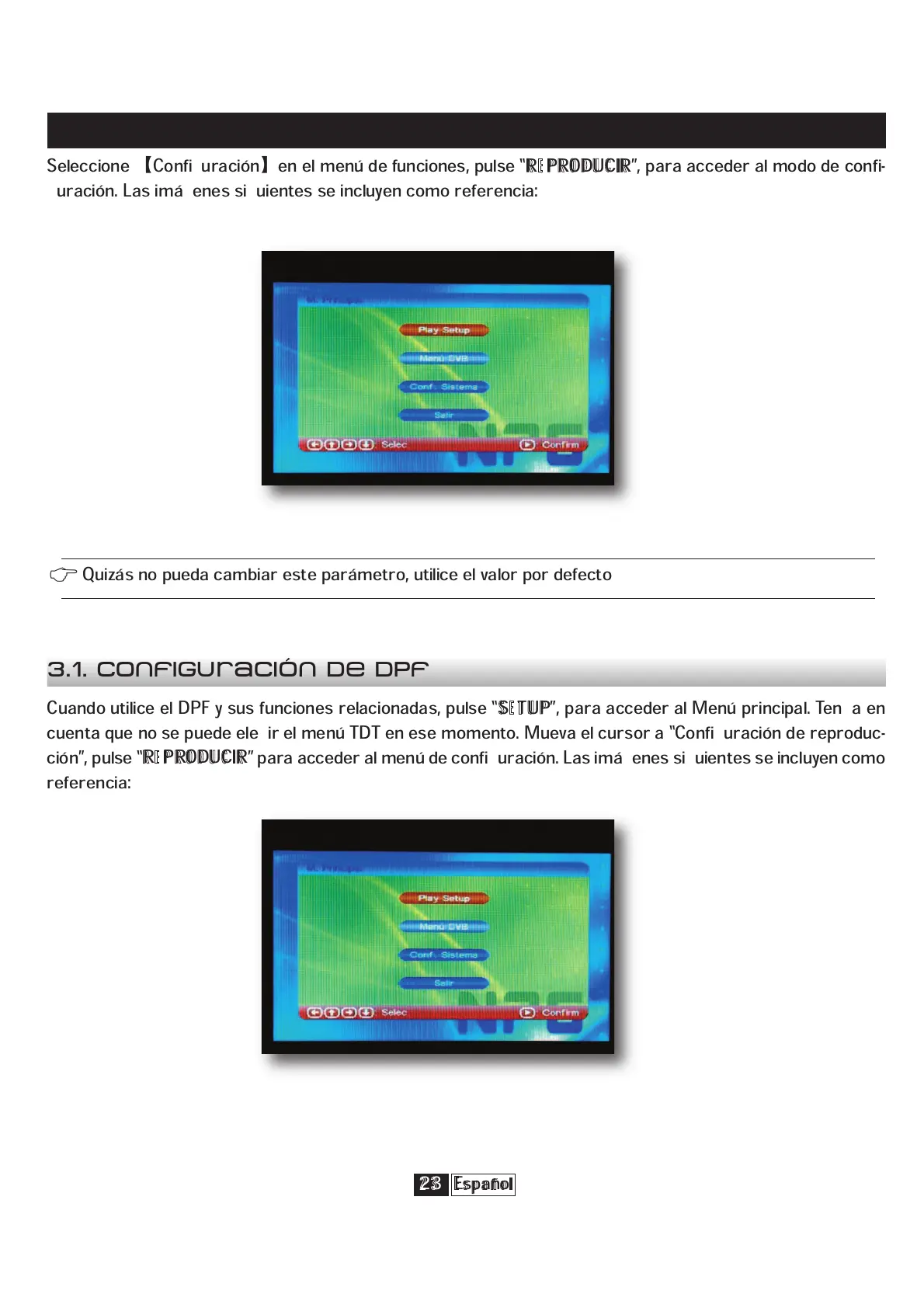 ” para acceder al menú de configuración. Las imágenes siguientes se incluyen como