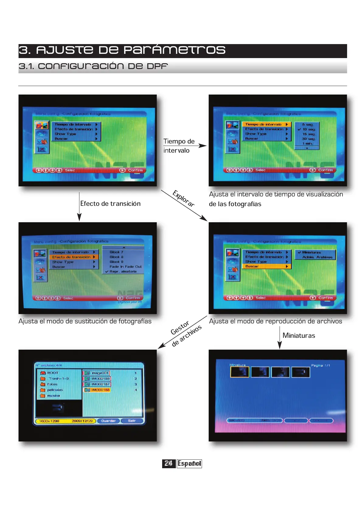 Ajusta el modo de sustitución de fotografías Ajusta el modo de reproducción de archivos