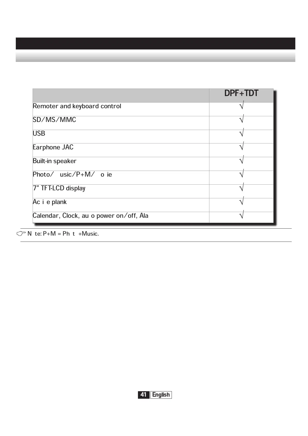 Note: P+M = Photo+Music.
