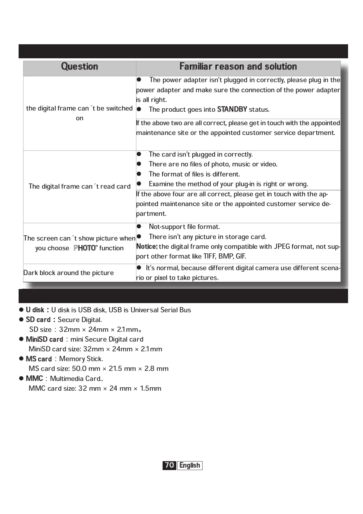 the digital frame only compatible with JPEG format, not sup-