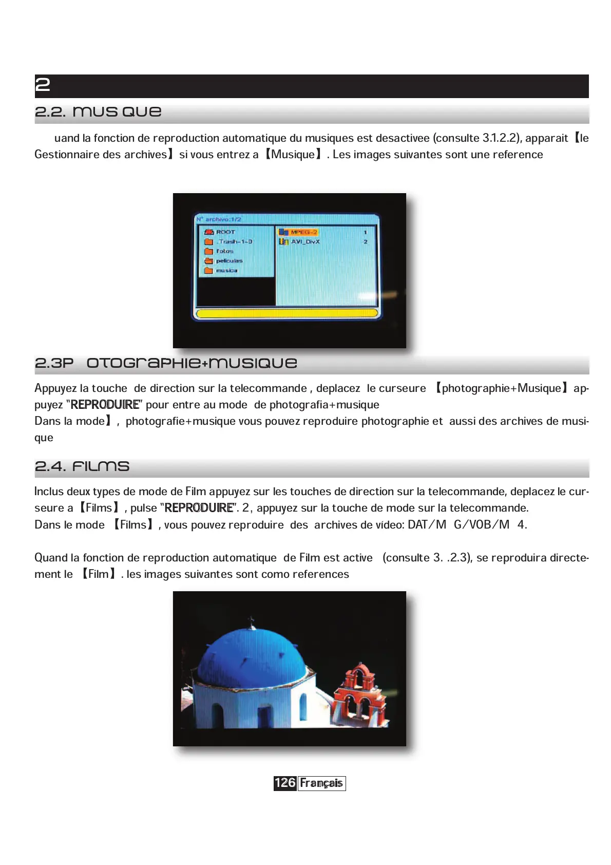 , vous pouvez reproduire des archives de vídeo: DAT/MPG/VOB/MP4.