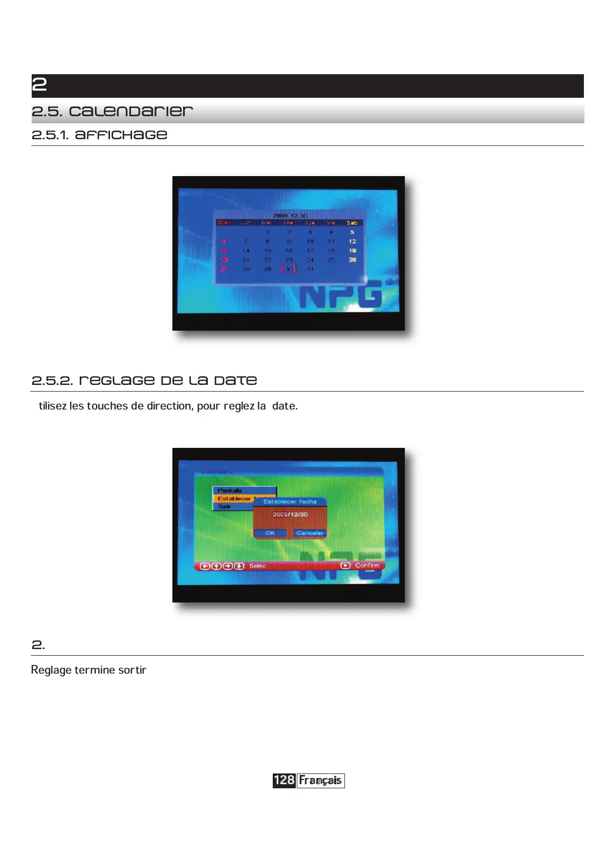 NPG PTF 700 ACB - Affichage; Reglages de Date; Sortir