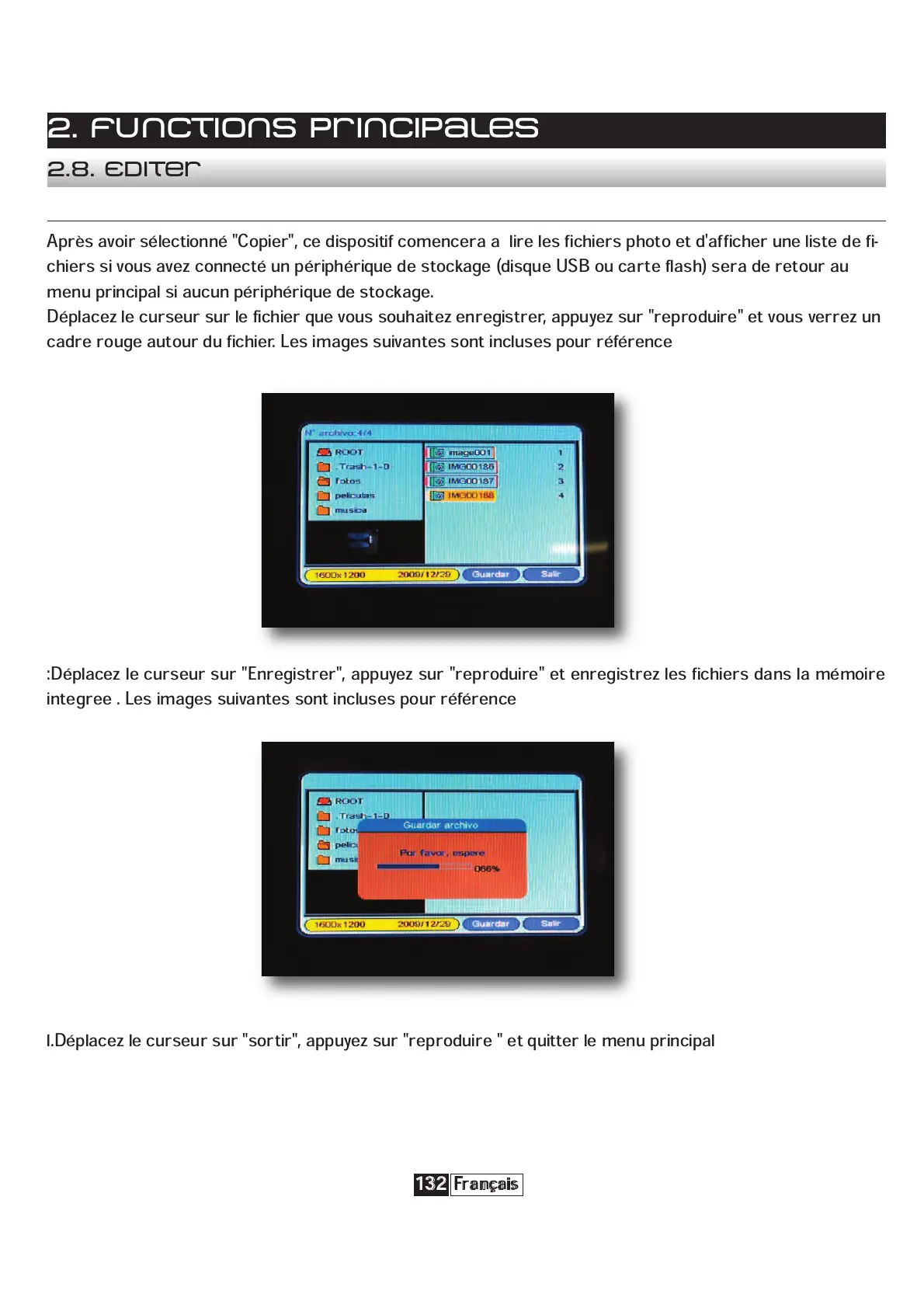 chiers si vous avez connecté un périphérique de stockage (disque USB ou carte flash) sera de retour au