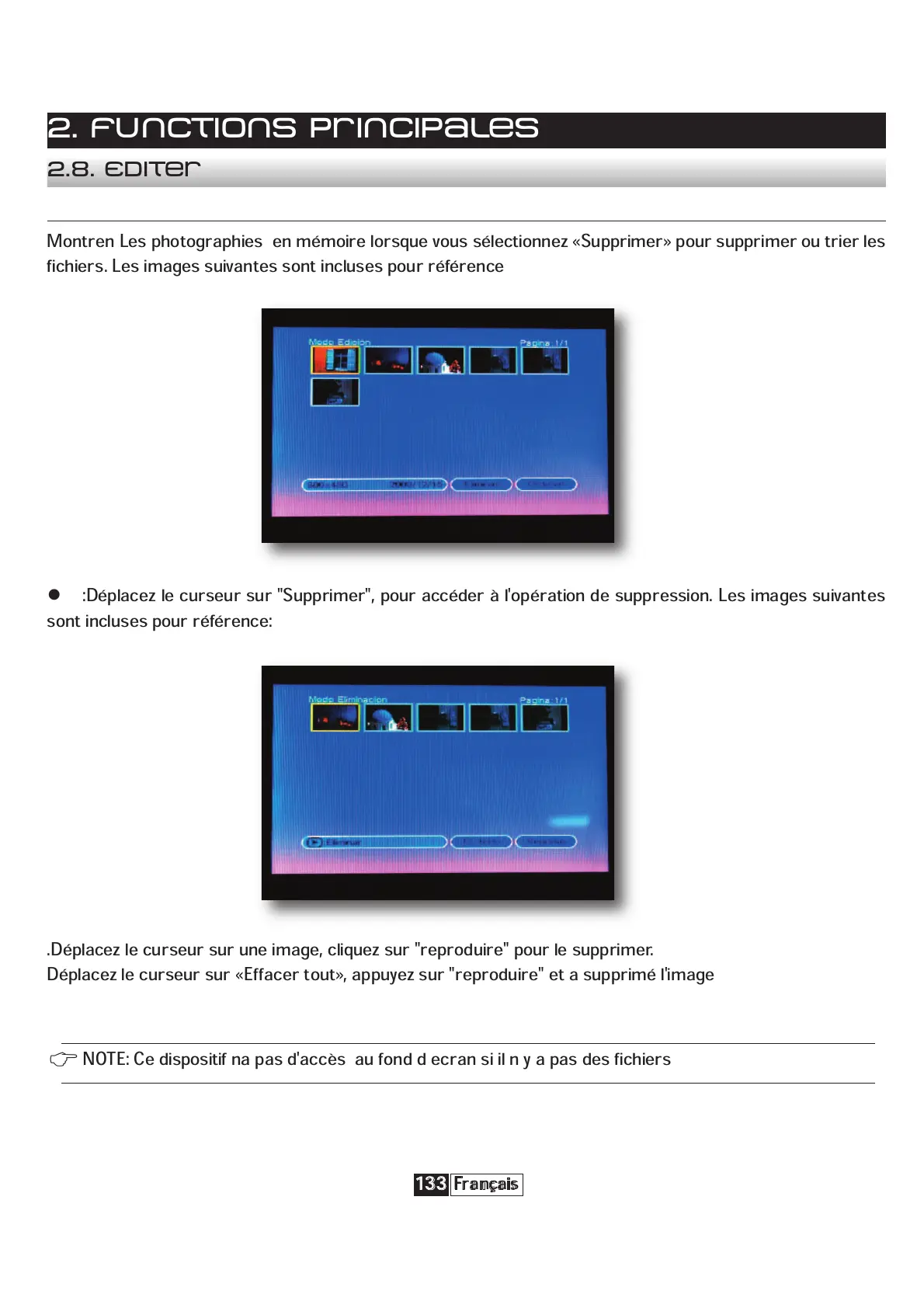 NOTE: Ce dispositif na pas d'accès au fond d ecran si il n y a pas des fichiers