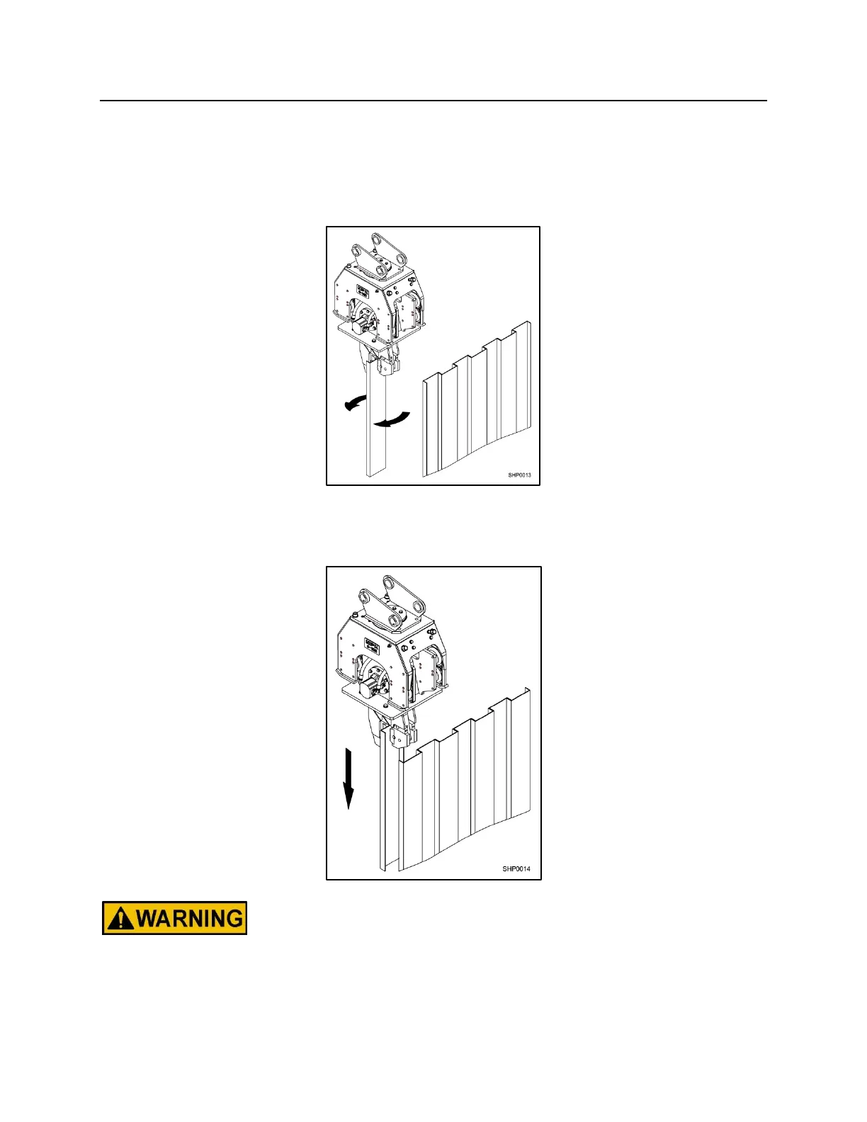 NOTE: Before starting to push a sheet pile, make sure it is securely chucked.
