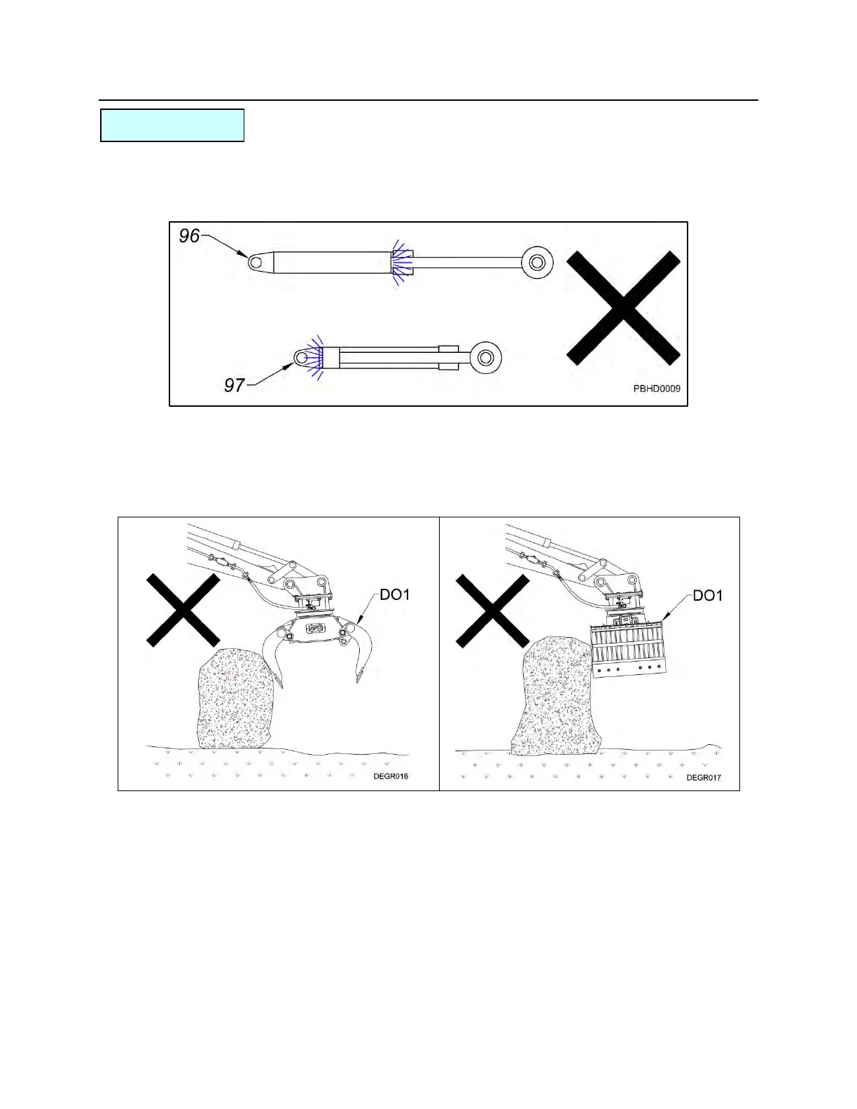 Do not use the Demolition Grab with the excavator cylinders fully extended (96) or