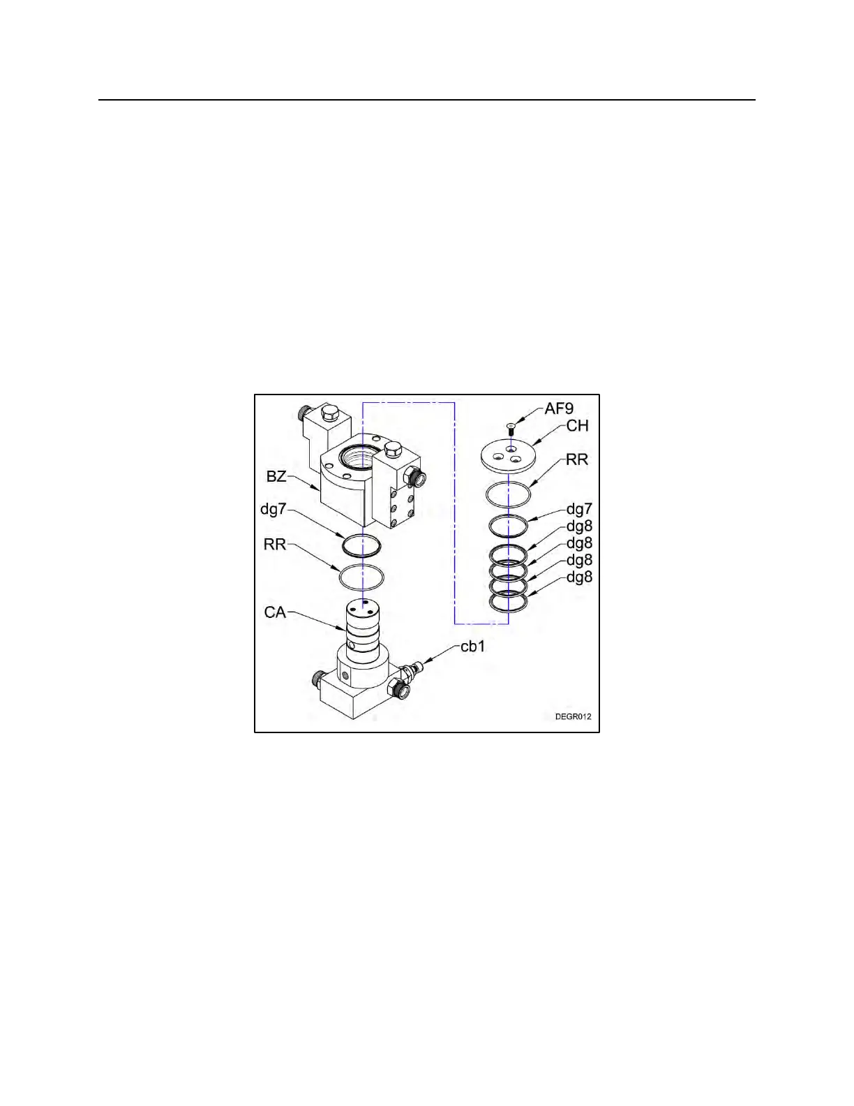 Lubricate the main seals (dg8), glide bearings (dg7) and o-rings (RR) with grease or