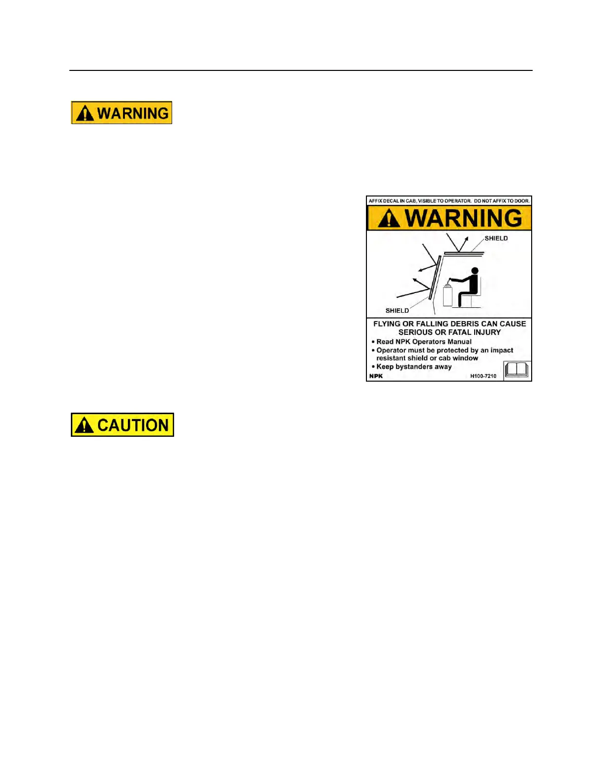 1. Operator personnel must read and understand the NPK INSTRUCTION MANUAL