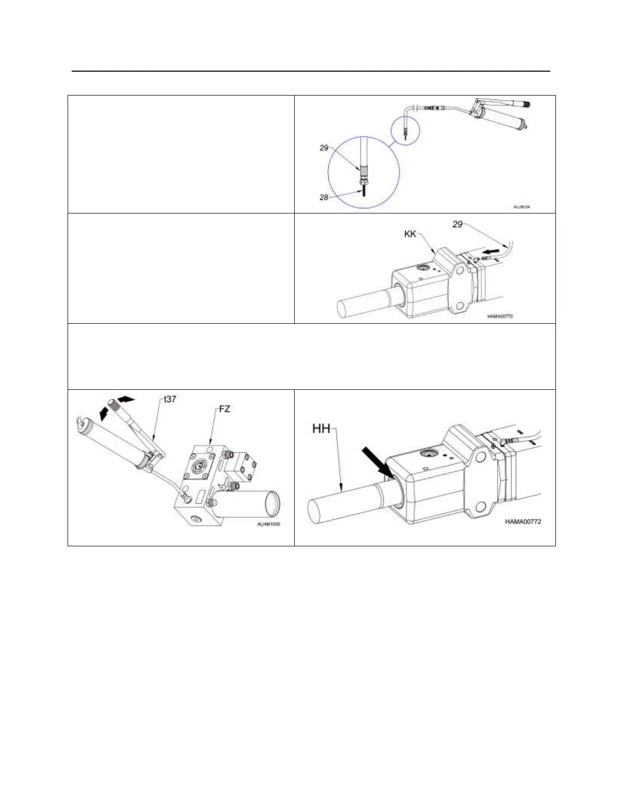 tool (HH). Look for grease coming out around the tool at the tool bushing (see arrow