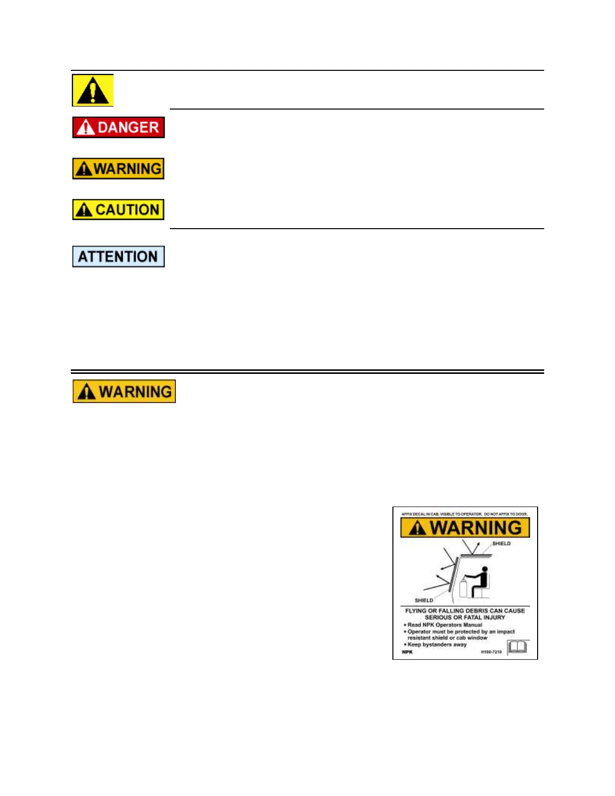 ATTENTION (blue) notices in NPK Instruction Manuals are an NPK