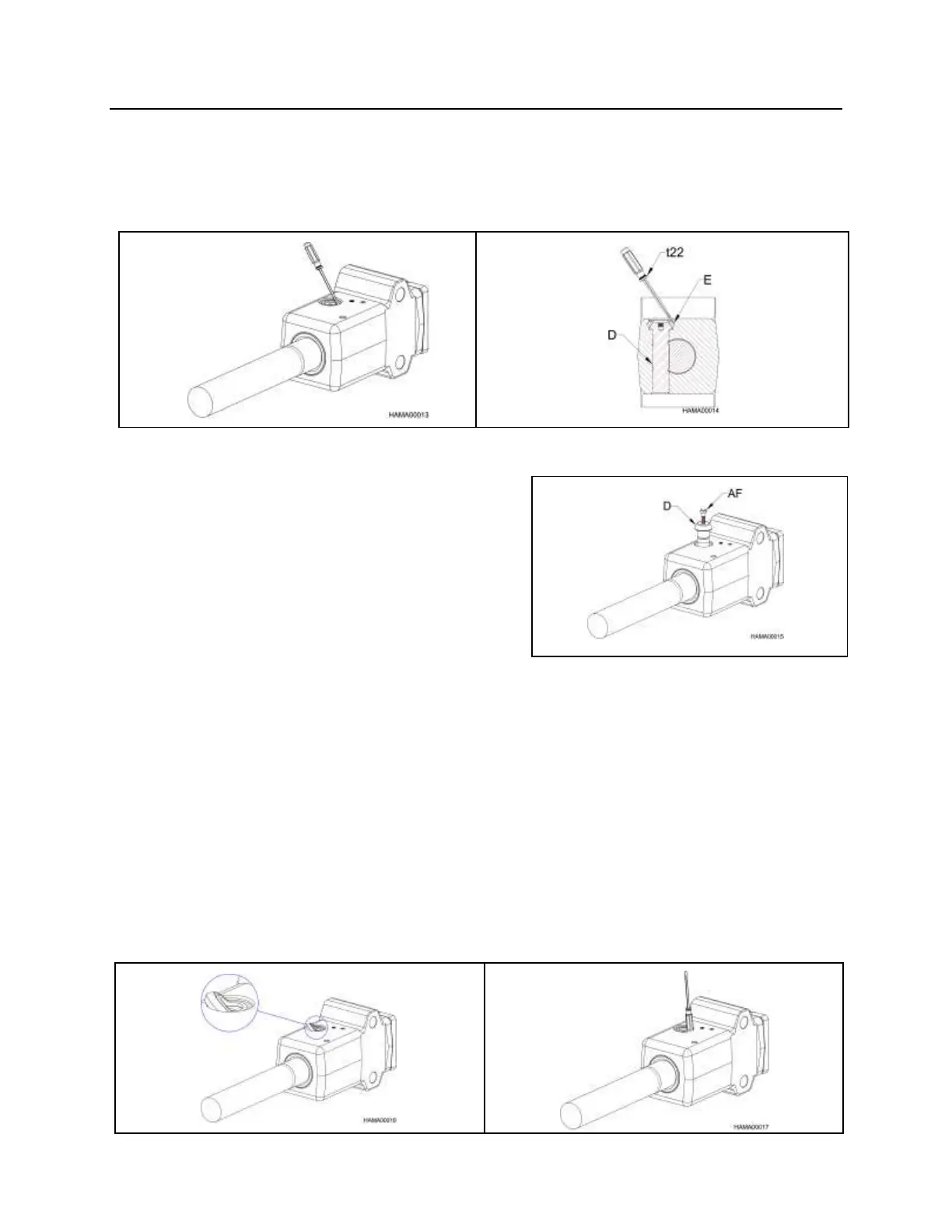 1. Remove the retaining pin ring (E) by using pliers or a screwdriver (t22), see Figures