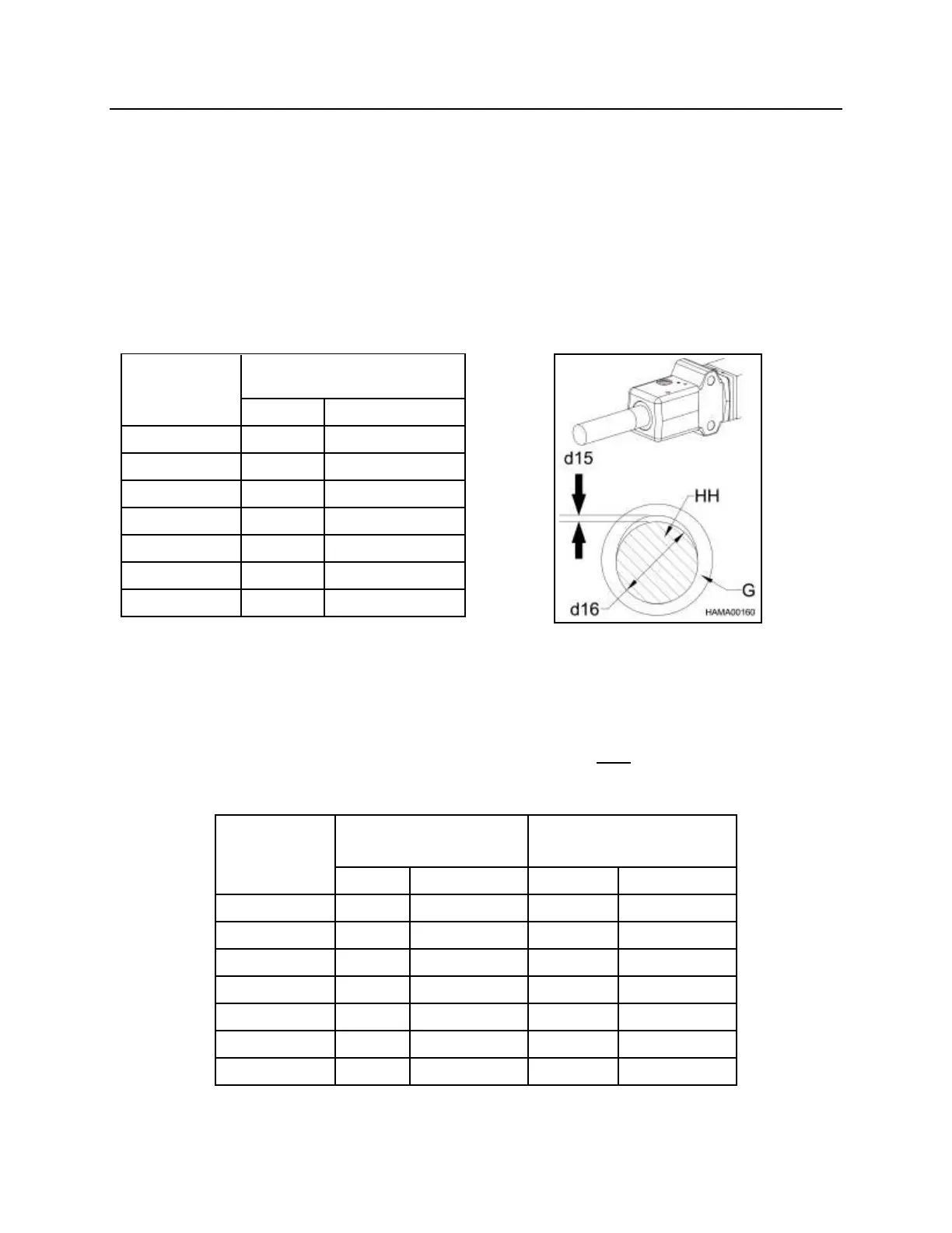 Measure the tool to bushing gap (d15) with the hammer horizontal, as illustrated below.